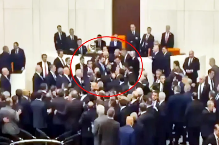అధ్యక్షుడు ఎర్డోగాన్ ఇటీవల క్యాబినెట్లో మార్పులు చేసి, వివాదాస్పద అధికారి అకిన్ గుర్లెక్ను కొత్తగా న్యాయశాఖ మంత్రిగా నియమించారు. ఆ యన ప్రమా ణ స్వీకారం చేసేందుకు పోడి యం వద్దకు వస్తుండగా ప్రతిపక్ష రిపబ్లికన్ పీపుల్స్ పార్టీ సభ్యులు అడ్డుకునే ప్రయత్నం చేశారు. దీం తో అధికార ఏకే పార్టీ సభ్యులు వారిని నిలువరించబోగా, ఇరువర్గాల మధ్య వాగ్వాదం పెరిగి తోపులాట, ఘర్షణకు దారితీసింది.