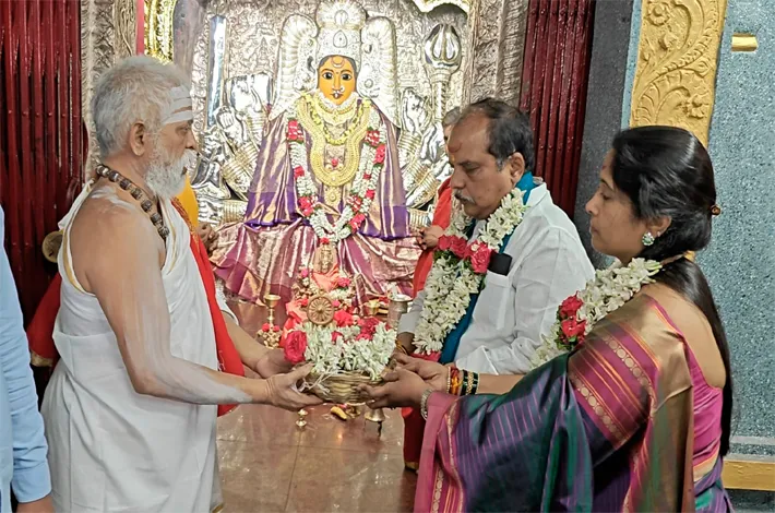 హనుమకొండ టౌన్, ఫిబ్రవరి 4 (విజయక్రాంతి): వరంగల్ లోని శ్రీ భద్రకాళి దేవస్థానాన్ని బుధవారం ఉదయం హనుమకొండ జిల్లా కాంగ్రెస్ పార్టీ అధ్యక్షులు, కూడా చైర్మన్ ఇనగాల వెంకట్రాంరెడ్డి దంపతులు తమ వివాహ వార్షికోత్సవ సందర్భం గా అమ్మవారికి ప్రత్యేక పూజలు నిర్వహించారు. ఆలయానికి విచ్చేసిన వెంకట్రాంరెడ్డి దంపతులకు ఆలయ ధర్మకర్తలు, అధికారు లు, అర్చకులు ఘన స్వాగతం పలికారు. ముందుగా ఆదిశంకరాచార్యులు, వల్లభ గణపతిని దర్శనం అనంతరం ఆలయ మహా మండపంలో భద్రకాళి శేషు ఆధ్వర్యంలో అర్చకులు, వేదపండితులు మహాదాశిర్వచనం నిర్వహించి, అమ్మవారి శేష వస్త్ర ములు బహుకరించి, ప్రసాదములు అందజేశారు.