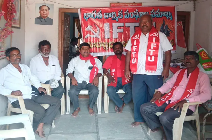 ఈ సమావేశంలో ఆయన మాట్లాడుతూ 8 గంటల పనిని అ మలు చేయాలని, కాంట్రాక్టీకరణ, అవుట్ ఔ ట్సోర్సింగ్ విధానాన్ని రద్దు చేయాలన్నారు. కనీస వేతనం 30.000 నిర్ణయించి అమలు చేయాలన్నారు. అలాగే 140 వ మేడే ను జరుపాలన్నారు. రాష్ట్రంలో కాంగ్రెస్ ప్రభు త్వం ఎన్నికలలో ఇచ్చిన హామీలను నెరవేర్చాలన్నారు. ఈ కార్యక్రమంలో ఐ ఎఫ్ టి యు జిల్లా ప్రధాన కార్యదర్శి గడ్డం నాగరా జు, జిల్లా నాయకులు కొంగరి సాయిరాం, పంజాల మురళి, ఊరడి రామ చంద్రు తదితరులు పాల్గొన్నారు.