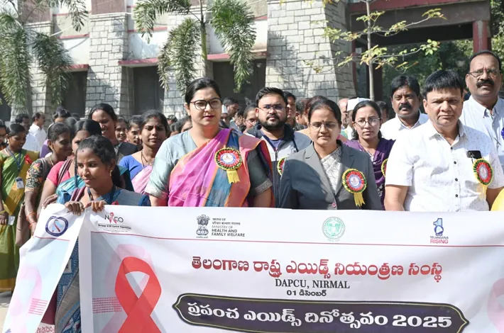 నిర్మల్ (విజయక్రాంతి): ప్రపంచ దేశాలను ఆందోళన చెందిస్తున్న ఎయిడ్స్ వ్యాధిని సమూలంగా నిర్మించాలంటే ప్రతి ఒక్కరు దానిపై అవగాహన పెంచుకోవాలని జిల్లా కలెక్టర్ అభిలాష అభినవ్ అన్నారు. సోమవారం ప్రపంచ ఎయిడ్స్ దినోత్సవం పురస్కరించుకొని పట్టణంలో ర్యాలీ నిర్వహించారు. ఈ ర్యాలీని ప్రారంభించిన కలెక్టర్ వైద్య ఉద్యోగులతో కలిసి పాల్గొన్నారు. ఎయిడ్స్ వ్యాధికి మందు లేదని అవగాహన ఒకటి మార్గమని వ్యాధి సోకిన వారి పట్ల ప్రభుత్వం తీసుకుంటున్న చర్యలను ప్రజలకు వివరించాలన్నారు. ఈ కార్యక్రమంలో అడిషనల్ కలెక్టర్ ఫైజాన్ అహ్మద్ జిల్లా వైద్యాధికారి డాక్టర్ రాజేందర్ వైద్య విధాన పరిషత్ జిల్లా అధికారి డాక్టర్ సురేష్ వైద్యులు పాల్గొన్నారు.