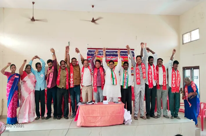 కార్మిక సోదరీ సోదరులారా రానున్న రోజుల్లో ప్రభుత్వ ఉద్యోగాలు బందు పెన్షన్ బందు రిటైర్మెంట్ బెనిఫిట్స్ బందు సంక్షేమ పథకాలు బందు విద్యా వైద్యం బందు చేస్తూ ప్రజలని నడిరోడ్డుపై నిలబెట్టేందుకు బిచ్చగాళ్లగా బిజెపి ప్రభుత్వం ప్రయత్నం చేస్తుందని ఈ దశలో కార్మికులందరూ దేశ సమగ్రతను సంక్షేమ చట్టాలను కాపాడుకునేందుకు ఏకతాటిపైకి రావాలని పిలుపునిచ్చారు ఫిబ్రవరి 12 సమ్మెలో కార్మికులు అధిక సంఖ్యలో పాల్గొని జయప్రదం చేయాలని విజ్ఞప్తి చేశారు. ఈ సమావేశంలో కార్మిక సంఘాల నాయకులు నాగభూషణం,జి నగేష్ గోనె మని,వంగ వెంకట్, భాస్కర్, ఎండూరి ప్రభావతి, కే బ్రహ్మచారి, భూక్యా రమేష్,జి పద్మ, నూపా భాస్కర్, సంజీవ్, డీ ప్రసాద్, తదితరులు పాల్గొన్నారు.