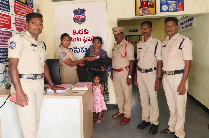 మహబూబాబాద్ (విజయక్రాంతి): వరంగల్ నగరంలోని శివనగర్ ప్రాంతానికి చెందిన మహమ్మద్ సహనా బేగం, తన ఇద్దరు మానవరాళ్లతో కలిసి మహబూబాబాద్ కి వచ్చి కురవి గేట్ వద్ద ఆటో ఎక్కి బేతోల్ లో దిగి తన చెల్లి ఇంటికి వెళ్లగా, తన బ్యాగ్ ని ఆటోలో మర్చిపోయిన విషయం గుర్తు వచ్చి వెంటనే బాధితురాలు కురవి పోలీసులకు ఫిర్యాదు చేశారు. స్పందించిన అదనపు ఎస్ఐ జయకుమార్, పోలీస్ కానిస్టేబుళ్లు అనిత, రమేష్ లు సాంకేతికత ఆధారంతో ఆటో మరిపెడ వైపు వెళ్తోందని తెలుసుకొని బాధితురాలిని పోలీస్ వాహనంలో తమతో పాటు తీసుకువెళ్లి పురుషోత్తమాయగూడెం వద్ద ఆటోను ట్రేస్ చేసి తనిఖీ చేయగా బ్యాగ్ దొరకడంతో పాటు బ్యాగ్ లో ఉండాల్సిన తులం బంగారం, రెండు స్మార్ట్ సెల్ ఫోన్స్ స్వాధీనం తీసుకొని బాధితురాలికి అందజేశారు. బ్యాగు పోగొట్టుకున్న సంఘటనపై ఫిర్యాదు చేయగానే కురవి పోలీస్ స్పందించిన తీరు, ఆమె వస్తువులు ఆమెకి దక్కడంతో సంతోషం వ్యక్తం చేస్తూ, పోలీసులకు కృతఙ్ఞతలు తెలిపారు.