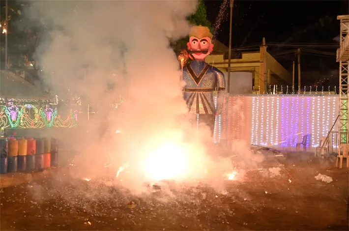 కరీంనగర్, అక్టోబర్01(విజయక్రాంతి); మహాశక్తి ఆలయం వద్దబుధవారం రాత్రి కరీంనగర్ లో అట్టహాసంగా మహిషాసుర సంహారం కార్యక్రమం జరిగింది. మహిషాసురుడి దిష్టిబొమ్మను దగ్గం చేసిన కేంద్ర మంత్రి బండి సంజయ్ భారీ ఎత్తున తరలివచ్చిన ప్రజలుమహిషాసుర సంహారాన్ని తిలకిస్తూ జై దుర్గాభవానీ అంటూ నినదించిన భక్తులు. కేంద్ర హోంశాఖ సహాయ మంత్రి బండి సంజయ్ కుమార్ మాట్లాడుతూధర్మరక్షణ కోసం చెడుపై మంచి సాధించిన విజయమే దసరా పర్వదినం అన్నారు.అధర్మానికి, అక్రమాలకు, అరాచకాలకు పాల్పడే వారిపై అంతిమ విజయం ధర్మానిదేఅన్నారు.