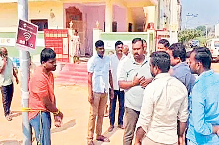 సూర్యాపేట, ఫిబ్రవరి 19 (విజయక్రాంతి): ఓ ఉన్మాది తాను ప్రేమించిన యువతి దూరం పెడుతోందని కక్ష పెంచుకుని ఆమెపై ఇనుప సుత్తెతో దాడిచేశాడు. యువతి కేకలు వేయడంతో నిందితుడిని స్థానికులు పట్టుకుని స్తం భానికి కట్టేసి దేహశుద్ధి చేశారు. తీవ్రగాయాలైన ఆమెను ఆస్పత్రికి తరలించారు. ఈ ఘట న సూర్యాపేట జిల్లా కేంద్రంలోని స్నేహనగర్ ప్రాంతంలో గురువారం జరిగింది.