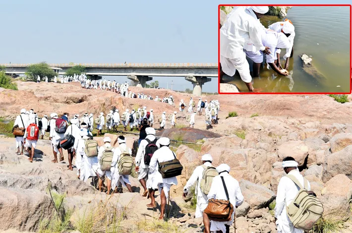 కేస్లాపూర్ నుంచి గోదావరి నది కోసం చేపట్టిన పాదయాత్రలో ఆదిలాబాద్, కుమ్రంభీం ఆసిఫాబాద్, నిర్మల్ జిల్లాలోని వివిధ మండలాల మీదుగా 205 కిలోమీటర్ల కాలినడకన బుధవారం ఉదయం గోదావరికి చేరుకున్నారు. గోదావరి నదిలో ప్రత్యేక స్నానాలు ఆచరించారు. అనంతరం మెస్రం వంశీయులు పాదయాత్రలో తమ వెంట తీసుకువెళ్లిన గోధుమ పిండి, బెల్లం, పెసర పప్పుతో నది ఒడ్డునే గంగానీళ్లతో ప్రత్యేకంగా తయారు చేసిన అప్పాలను గంగా దేవికి నైవేద్యంగా సమర్పించారు.