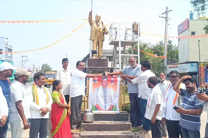 కమాన్ పూర్ లో మంత్రి శ్రీధర్ బాబు చిత్రపటానికి పాలాభిషేకం