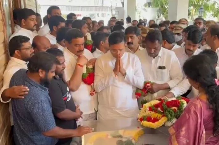ఎల్బీనగర్: ఇటీవల అమెరికాలో గుర్తు తెలియని వ్యక్తి జరిపిన కాల్పుల్లో దుర్మరణం పాలైన పోలే చంద్రశేఖర్ మృతదేహం శనివారం తెల్లవారుజామున బీఎన్ రెడ్డి డివిజన్ పరిధిలోని టీచర్స్ కాలనీలోని ఆయన స్వగృహానికి చేరింది. ఈ మేరకు మంత్రులు శ్రీధర్ బాబు(Minister Sridhar Babu), అడ్లూరి లక్ష్మణ్ కుమార్, కార్పొరేషన్ చైర్మన్ మల్ రెడ్డి రాంరెడ్డి, ఎల్బీనగర్ ఎమ్మెల్యే సుధీర్ రెడ్డి తదితరులు చంద్రశేఖర్ మృతదేహానికి పూలమాల వేసి, నివాళులర్పించారు. బాధిత కుటుంబ సభ్యులను పరామర్శించి, వారికి ప్రగాఢ సానుభూతి తెలిపారు. ప్రభుత్వం తరఫున అన్ని విధాలుగా ఆదుకుంటామని హామీ ఇచ్చారు.
