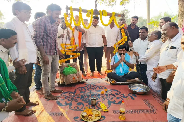 మొక్కులు చెల్లించుకున్న ఎమ్మెల్యే పాల్వాయి హరీశ్బాబు