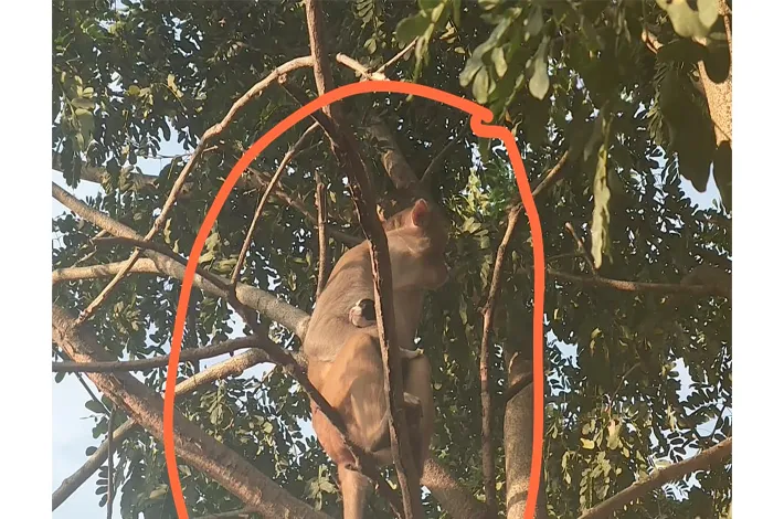రేగొండ సెప్టెంబర్ 30(విజయక్రాంతి): మండలంలోని తిరుమలగిరి గ్రామంలో వింత ఘటన మంగళవారం జరిగింది. ఓ వానరం అప్పుడే పుట్టిన చిన్న కుక్క పిల్లను ఎత్తుకొని చెట్లపై తిరుగుతుంది. స్థానికులు ఎంత ప్రయత్నించినా కుక్క పిల్లను విడవకుండా కింద పడకుండా గట్టిగా పట్టుకుని ఓ చెట్టు పైనుండి మరో చెట్టు పైకి దునుకుతూ స్థానికుల పైకి దాడి చేయడానికి ప్రయత్నిస్తుందే తప్ప కుక్క పిల్లను విడవడం లేదు.