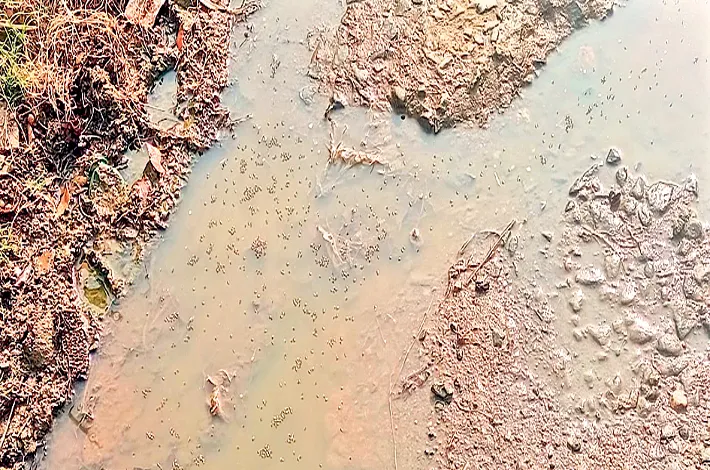 అశ్వాపురం, ఫిబ్రవరి 22 (విజయక్రాంతి): అశ్వాపురం జగదంబ షాప్ స్ట్రీట్ లైన్లోని సీసీ రోడ్డు, మూలవద్ద రోడ్ పగిలిపోవడంతో గుంతలు ఏర్పడ్డాయి. ఆ గుంతల్లో గత రెండేళ్లుగా మురికి నీరు నిల్వ ఉండటంతో అక్కడ ఈగలు, దోమలు విపరీతంగా పెరిగి తీవ్ర దుర్వాసన వ్యాపిస్తోంది. ఈ పరిస్థితి కారణంగా చుట్టుపక్కల నివాసితులు తీవ్ర ఇబ్బందులు ఎదుర్కొంటున్నారని స్థానికులు తెలిపారు.