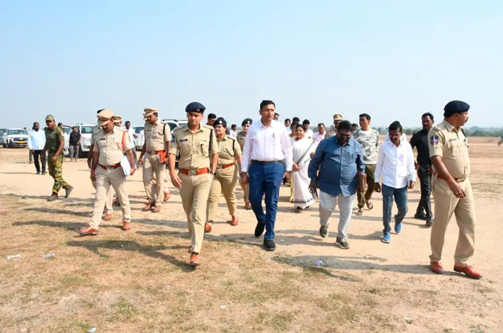 ఏరోడ్రోమ్ లో హెలిపాడ్, పోలీస్ ఏఆర్ హెడ్ క్వార్టర్స్ అభివృద్ధి పనుల శంకుస్థాపనలు, ఇందిరా ప్రియదర్శిని స్టేడియంలో నిర్వహించనున్న ప్రజా సమావేశానికి సంబంధించిన ఏర్పాట్లను సమగ్రంగా పరిశీలించాలని ఆదేశించారు. ఎస్పీ మాట్లాడుతూ.. పోలీస్ బందో బస్తు, ట్రాఫిక్ నియంత్రణ, మార్గాల గుర్తింపు వంటి అంశాలపై విభాగాలకు దిశానిర్దేశం చేశారు.