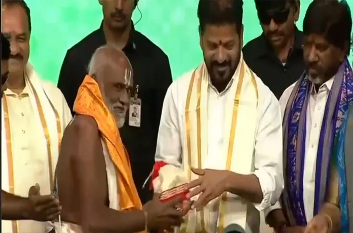 కొడంగల్, మార్చి 19 (విజయక్రాంతి) : తెలుగు నూతన సంవత్సరమైన ఉగాది పర్వదినాన్ని పురస్కరించుకుని తెలంగాణ రాష్ట్ర ముఖ్యమంత్రి రేవంత్ రెడ్డి చేతుల మీదుగా కొడంగల్ శ్రీ మహాలక్ష్మి వెంకటేశ్వర స్వామి ఆలయ పూజారి రామస్వామి ఉగాది పురస్కారాన్ని అందుకున్నారు. తెలంగాణ రాష్ట్ర ప్రభుత్వం భాషా సాంస్కృతిక శాఖ మరియు దేవాదాయ,