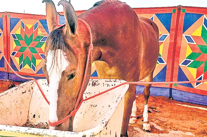 జైపూర్, అక్టోబర్26:ఈ చిత్రంలో కనిపిస్తున్న అశ్వం పేరు నగీరా. పంజాబ్లోని బరిండా ప్రాంతానికి చెందిన గోరాభాయ్ పెంచుకుంటున్న 31నెలల గుర్రం 63.5 అంగుళాల పొడవు ఉంది.