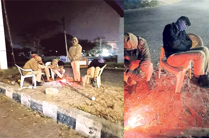 - కామారెడ్డిలో చలిమంట కాచుకుంటున్న స్పెషల్ పార్టీ తనికి పోలీసులు.