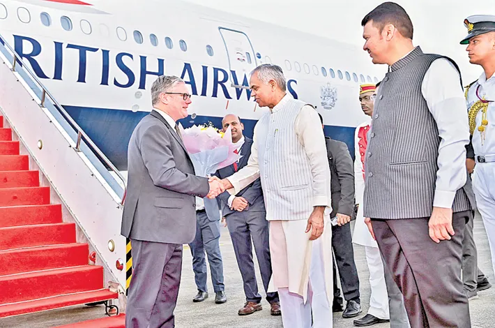 ముంబై, అక్టోబర్ 8 : ఇప్పటి వరకు జరగని విధంగా భారత్ దేశాల మధ్య కొత్తగా వాణ్యిజ్య ఒప్పందం కుదరనుందని యూకే ప్రధాని కిర్ స్మార్టర్ తెలిపారు. రెండు రోజుల అధికార పర్యటనలో భాగంగా స్మార్టర్ బుధవారం ముంబై అంతర్జాతీయ ఎయిర్పోర్టుకు స్మార్టర్ చేరుకున్నారు. ఆయనకు మహారాష్ట్ర ముఖ్యమంత్రి దేవేంద్ర ఫడణవీస్, డిప్యూటీ సీఎంలు ఏక్నాథ్ శిండే, అజిత్ పవార్, గవర్నర్ ఆచార్య దేవవ్రత్లు స్వాగతం పలికారు. రెండు రోజుల అధికారిక పర్యటలో భాగంగా బ్రిటీష్ ఎయిర్వేష్కు చెందిన 9100 విమానంలో స్మార్టర్ ఇండియాకు వచ్చారు.