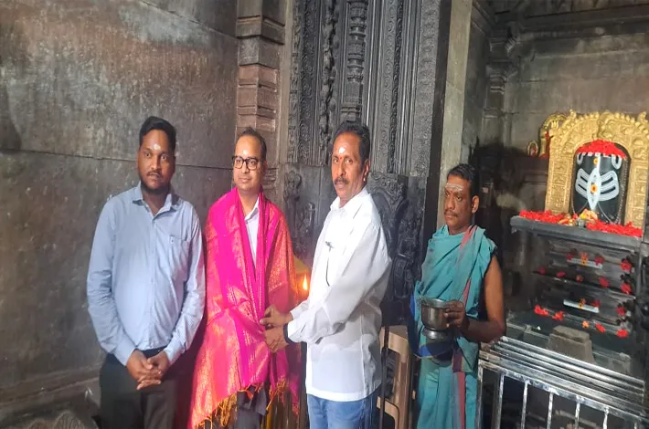 వెంకటాపూర్, మార్చి 12 (విజయక్రాంతి): మండలంలోని ప్రసిద్ధ గాంచిన ప్రపంచ వారసత్వ సంపద కట్టడమైన రామప్ప దేవాలయాన్ని గురువారం నీతి అయోగ్ గ్రేడ్1 కన్సల్టెంట్ క్రిష్ణన్ గోపాల్, కో-ఆర్డినేటర్ రవిష్ లు సందర్శించారు. ఈ సందర్భంగా ఆలయ అర్చకులు ఉమాశంకర్ ప్రత్యేక పూజలు నిర్వహించి తీర్థప్రసా దాలు అందజేశారు. అనంతరం ఆలయ ఈ వో ఇమ్మడి భాస్కర్ శాలువాతో నీతి ఆయో గ్ బృందాన్ని సత్కరించారు. అనంతరం ఆలయ చరిత్ర, శిల్పకళా విశిష్టత గురించి టూరిజం గైడ్ గోరంటల విజయ్ కుమార్ వారికి వివరించారు.