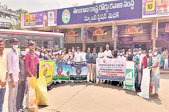 మెదక్, ఫిబ్రవరి 25 (విజయ క్రాంతి) :జాతీయ సేవా పథకం (ఎన్ఎస్ఎస్) కార్యకర్తలు సామాజిక సైనికులుగా భావించి సమాజ సేవకు ఎల్లప్పుడూ సిద్ధంగా ఉండాలని ఎన్ఎస్ఎస్ రీజినల్ సెంటర్ అసిస్టెంట్ డైరెక్టర్ సైదియా నాయక్ అన్నారు. బుధవారం ప్రభుత్వ డిగ్రీ కళాశాల మెదక్ లో ఎన్ఎస్ఎస్ ఆధ్వర్యంలో నిర్వహించిన మాస్ క్లీనింగ్ కార్యక్రమంలో భాగంగా ప్లాస్టిక్ నివారణ లక్ష్యంతో చేపట్టిన శుభ్రత కార్యక్రమంలో ఆయన ముఖ్య అతిథిగా పాల్గొని ఎన్ఎస్ఎస్ వాలంటీర్లను ఉద్దేశించి ప్రసంగించారు.