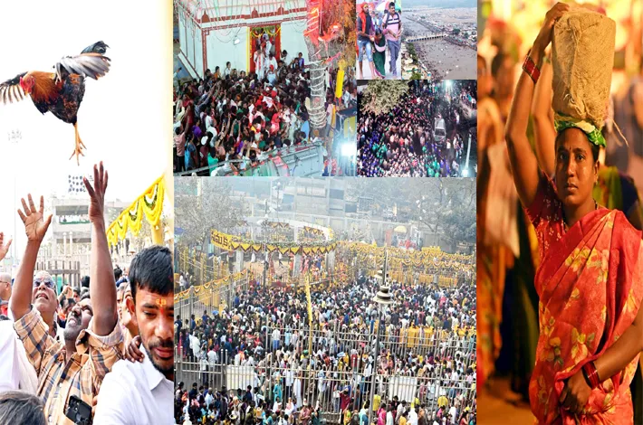 లక్షలాది మంది భక్తుల రాకతో మేడారం అడవి పులకించిపోతోంది. ఆధునిక కాలంలోనూ ఆదివాసీ సంప్రదాయాలు ఎంత శక్తివంతంగా ఉంటాయో చాటిచెప్పే ఈ జాతర, కేవలం ఒక పండుగ మాత్రమే కాదు.. అది కోట్లాది మంది నమ్మకం. మేడారంలో ఎక్కడ చూసినా బెల్లం (బంగారం) కుప్పలే కనిపిస్తున్నాయి. భక్తులు తమ కోరికలు తీరినందుకు కృతజ్ఞతగా తల్లులకు ‘బంగారం’ సమర్పించుకుంటున్నారు. గిరిజన ఆచారం ప్రకారం గొర్రెలు, మేకలను సమర్పించి వనదేవతలకు మొక్కులు చెల్లిస్తున్నారు.