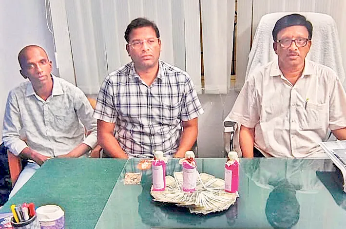 - లంచం తీసుకుంటూ పట్టుబడ్డ ఇద్దరు అధికారులు, ఓ ప్రైవేటు వ్యక్తి
