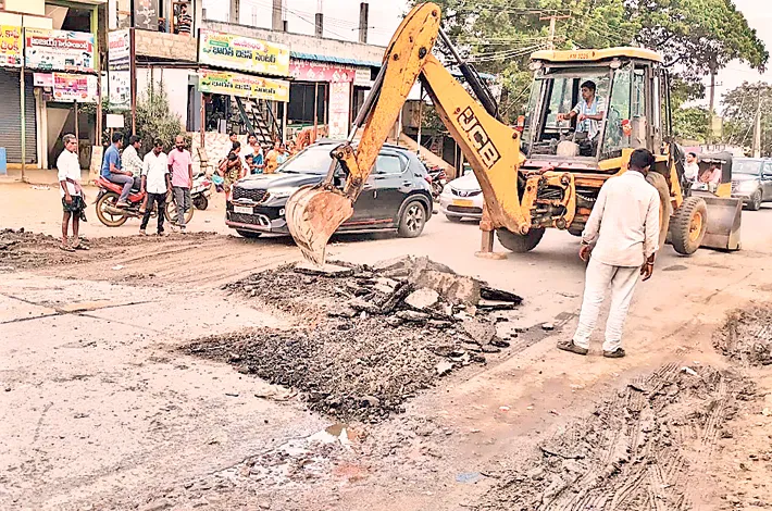 ఎమ్మెల్యే చొరవతో రోడ్డు గుంతలు పూడ్చిన అధికారులు