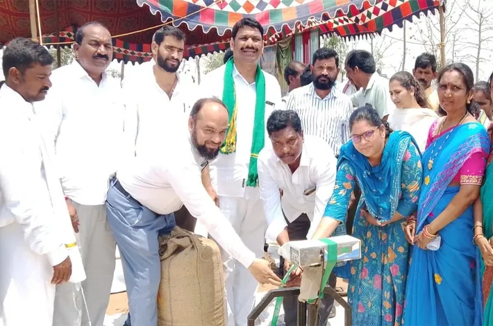 ధాన్యం కొనుగోలు కేంద్రాన్ని ప్రారంభించిన అధికారులు