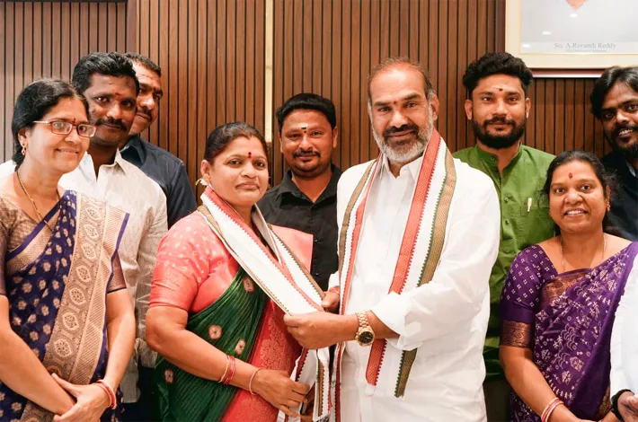 వేములవాడ జనవరి 28 (విజయక్రాంతి): వేములవాడ మున్సిపల్ 28 వార్డుకు చెందిన గోపన్నగారి మాధవి లత బుధవారం రాష్ట్ర ప్రభుత్వం విప్ ఆది శ్రీనివాస్ ఆధ్వర్యంలో కాంగ్రెస్ పార్టీలో చేరారు.రాష్ట్ర ప్రభుత్వ విప్ ఆది శ్రీనివాస్ వారికి కండువా కప్పి కాంగ్రెస్ పార్టీలోకి ఆహ్వానించారు. రానున్న ఎన్నికల్లో కాంగ్రెస్ పార్టీ అభ్యర్థుల విజయం కోసం కృషి చేయాలని విప్ సూచించారు. గత పది సంవత్సరాలలో గత ప్రభుత్వం వేములవాడ అభివృద్ధిని విస్మరించిందని అన్నారు.. వేములవాడ పట్టణంలో జరుగుతున్న అభివృద్ధి పనులను చూసి కాంగ్రెస్ పార్టీ అభ్యర్థులకు అండగా ఉండాలని పిలుపునిచ్చారు.