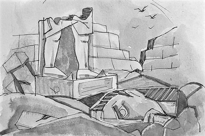 విశాలమైన దేహం లేని రెండు రాతికాళ్లు