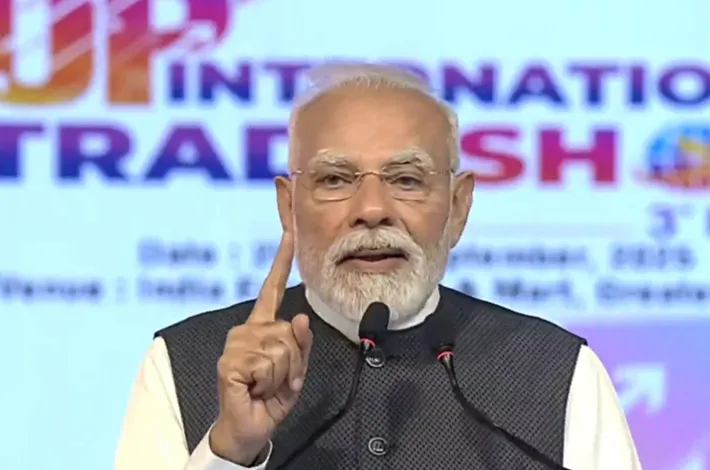 గ్రేటర్ నోయిడా: భారతదేశ ఆర్థిక వ్యవస్థ మరింత బలపడటంతో ప్రజలపై పన్ను భారం మరింత తగ్గుతుందని ప్రధానమంత్రి నరేంద్ర మోడీ గురువారం అన్నారు. జీఎస్టీలో సంస్కరణలు నిరంతర ప్రక్రియని చెప్పారు. యుపి అంతర్జాతీయ వాణిజ్య ప్రదర్శన (Uttar Pradesh International Trade Show)ను ప్రారంభించిన తర్వాత సభికులను ఉద్దేశించి మోడీ(PM Modi Speech) మాట్లాడుతూ... జీఎస్టీలో ఇటీవలి నిర్మాణాత్మక సంస్కరణలు భారతదేశ వృద్ధికి కొత్త రెక్కలు ఇస్తాయని, ప్రజలకు ఎక్కువ పొదుపుకు దారితీస్తాయని పేర్కొన్నారు. 2017లో జీఎస్టీని అమలు చేయడం ద్వారా ప్రభుత్వం పరోక్ష పన్ను విధానంలో సంస్కరణలను ప్రవేశపెట్టిందని, ఇది ఆర్థిక వ్యవస్థను బలోపేతం చేసే దిశగా ఒక ముఖ్యమైన అడుగు అని, ఆ తర్వాత ఈ ఏడాది సెప్టెంబర్లో మరిన్ని సంస్కరణలు చేపట్టిందని నరేంద్ర మోదీ పేర్కొన్నారు.