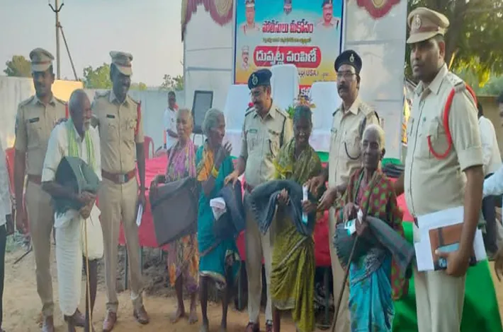 ఎన్నారై సహకారంతో నిరుపేదలకు దుప్పట్లు పంపిణీ చేసిన పోలీసులు