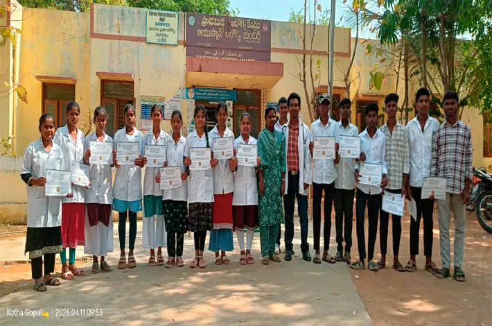 గండీడ్, ఏఫ్రిల్ 12: విద్యార్థులు ప్రతి వి షయాన్ని అవగతం చేసుకుంటూ అభ్యసన చేయాలని డాక్టర్ చంద్రశేఖర్ అన్నారు. మం డల పరిధిలోని వెన్నచేడు మోడల్ జూనియర్ కాలేజ్ ఒకేషనల్ కోర్స్ 16 మంది విద్యార్థులకు మండల కేంద్రంలోని పి హెచ్ సి, ప్రైమరీ హెల్త్ సెంటర్లో ట్రైనింగ్ ఇచ్చారు. ఈ సందర్బంగా డాక్టర్ చంద్రశేఖర్ మాట్లాడుతూ వెన్నాచెడు మోడల్ జూనియర్ కాలేజీలో స్లున్,బిపి,షుగర్,సిపిఆర్, వంటి ఆరోగ్య విషయాలలో అవగాహన కల్పిస్తూ సూచనలు ఇచ్చి వారికి సర్టిఫికెట్లు ఇవ్వడం జరిగిందిని తెలిపారు. ఈ కార్యక్రమంలో వె న్నచెడు మాడల్ జూనియర్ కాలేజ్ ఒకేషన ల్ హెల్త్ కేర్ పి.ఈశ్వరమ్మ, పిహెచ్ సి ఫార్మసిస్ట్ దుర్గా మల్లేశ్వరి, వైద్య సిబ్బంది యాద మ్మ,మమత, బాలమణి, ఒకేషనల్ విద్యార్థులు పాల్గొన్నారు.