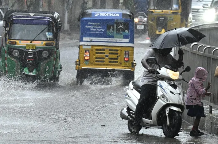 హైదరాబాద్: నగరంలోని పలు ప్రాంతాల్లో శనివారం మధ్యాహ్నం భారీ వర్షం(Hyderabad Rain ) కురుస్తోంది. తెల్లవారుజాము నుంచే కురిసిన ముసురు మధ్యాహ్నం వరకు జోరందుకుంది. నగరంలోని జూబ్లీహిల్స్, బంజారాహిల్స్, అమీర్ పేట్, షేక్ పేట్, మణి కొండ, మెహదీపట్నం, టోలిచౌకి, ఫిలిం నగర్, ఆరాం ఘర్, కోఠి, పంజాగుట్ట, హైటెక్ సిటీ, ఎర్రగడ్డ, గచ్చిబౌలి తదితర ప్రాంతాల్లో వర్షం కురుస్తోంది. బంగాళాఖాతంలో ఏర్పడిన ప్రస్తుత అల్పపీడనం తుఫానుగా మారే అవకాశం ఉన్నందున, అక్టోబర్ 27 నుండి 29 వరకు తెలంగాణలోని పలు ప్రాంతాల్లో భారీ వర్షాలు కురుస్తాయని భారత వాతావరణ శాఖ (India Meteorological Department) అంచనా వేసింది. ప్రస్తుతం అల్పపీడన దశలో ఉన్న వాతావరణ వ్యవస్థ అక్టోబర్ 26 నాటికి తీవ్ర వాయుగుండంగా బలపడి అక్టోబర్ 27న తుఫానుగా మారే అవకాశం ఉందని, అక్టోబర్ 27, 28 తేదీల్లో తెలంగాణలో భారీ వర్షాలు కురుస్తాయని ఐఎండీ హైదరాబాద్ కేంద్రం తెలిపింది.