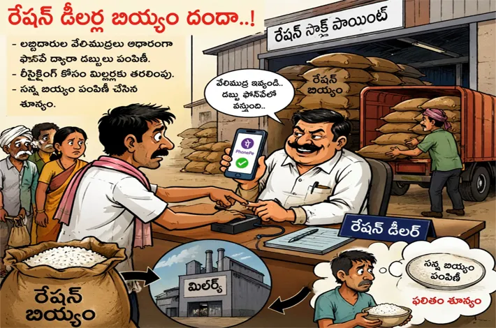 లబ్ధిదారులకు ఇవ్వాల్సిన సన్న బియ్యం కిలో 20 చొప్పున లబ్ధిదారుడికి ఫోన్ పే లేదా నగదు రూపంలో చెల్లిస్తూ రేషన్ దుకాణాల్లో స్టాక్ మెయింటెన్ చేస్తున్నట్లు ఆరోపణలు వినిపిస్తున్నాయి. ఈ క్రమంలోనే కొన్నిచోట్ల రేషన్ దుకాణాల వద్ద లబ్ధిదారులు బియ్యమే కావాలని వాదనకు దిగుతున్న పరిస్థితి. ఈ వ్యవహారంపై కొంతమంది లబ్ధిదారులు ప్రజా సంఘాలు రేషన్ డీలర్ల పై చర్యలు తీసుకోవాలని కోరుతూ అధికారులకు ఫిర్యాదులు కూడా చేస్తున్న పరిస్థితి.