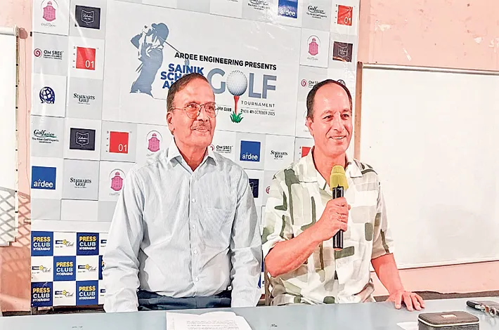 ఖైరతాబాద్, సెప్టెంబర్ 30(విజయ క్రాంతి) : ప్రతిష్ఠాత్మక ఆర్డీ ఇంజినీరింగ్ ఇం టర్ సైనిక్ స్కూల్స్ అలుమ్నీ గోల్ఫ్ టోర్నమెంట్ ఈ నెల 2 నుంచి 4వరకు హైదరా బాద్ లోని బోల్డర్ హిల్స్ గోల్ఫ్ అండ్ కంట్రీ క్లబ్లో ప్రారంభించనున్నట్టు స్టాల్వరట్స్ గోల్ఫ్ డైరెక్టర్, రిటైర్డ్ బ్రిగేడియర్ డి.వి.సింగ్ తెలిపారు. ఈ మేరకు మంగళవారం సోమాజిగూడ ప్రెస్ క్లబ్లో ఏర్పా టు చేసిన విలేకరుల సమావేశంలో ఆర్డి ఇంజనీరింగ్ సైనిక్ స్కూల్ ప్రతినిధి వై.వి.ప్రసాద్తో కలిసి మాట్లాడారు.... మూ డు రోజులపాటు జరిగే ఈ టోర్నమెం ట్లో మూడు విభాగాల్లో వ్యక్తిగత పోటీలను నిర్వహించనున్నట్లు తెలిపారు.