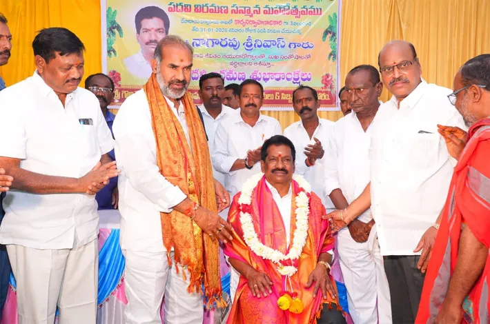 రాజన్న సిరిసిల్ల,(విజయక్రాంతి): ప్రతి ఉద్యోగికీ పదవీ విరమణ తప్పనిసరి అని రాష్ట్ర ప్రభుత్వ విప్ ఆది శ్రీనివాస్ పేరుకొన్నారు. వేములవాడ అర్బన్ మండలం అగ్రహారం ఆంజనేయ స్వామి ఈవో నాగారపు శ్రీనివాస్ పదవీ విరమణ చేస్తున్న సందర్భంగా నిర్వహించిన సన్మాన కార్యక్రమంలో రాష్ట్ర ప్రభుత్వ విప్ ఆది శ్రీనివాస్ పాల్గొన్నారు. ఆంజనేయ స్వామి వారిని దర్శించుకొని ప్రత్యేక పూజలు నిర్వహించారు.