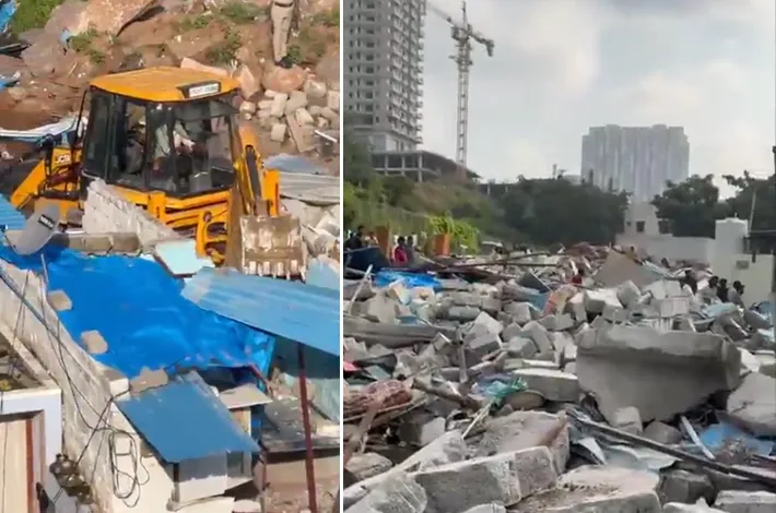 హైదరాబాద్: మణికొండ మునిసిపాలిటీ(Manikonda Municipality) పరిధిలోని అక్రమ నిర్మాణాల కూల్చివేత పనులను బుధవారం గండిపేట రెవెన్యూ అధికారులు చేపట్టారు. నార్సింగి పోలీసుల గట్టి భద్రత మధ్య ఈ కూల్చివేత కార్యక్రమం జరిగింది. నివేదికల ప్రకారం, అధికారులు ఇప్పటివరకు దాదాపు 60 చదరపు గజాల ప్లాట్లలో నిర్మించిన ఐదు ఇళ్లను కూల్చివేసారు.
