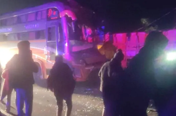 లారీని ఢీకొన్న ప్రైవేట్ బస్సు ఇద్దరు మృతి పలువురికి