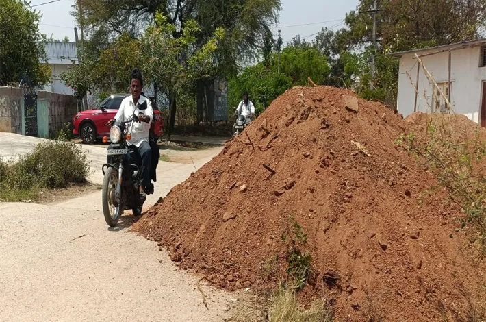 మట్టి నిల్వతో రోడ్డు బ్లాక్