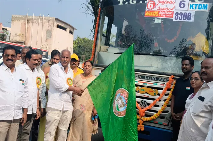 కొత్తగూడెం, జనవరి 26, (విజయక్రాంతి): ఆసియాలోనే అతిపెద్ద గిరిజన జాతరగా పేరొందిన మేడారం సమ్మక్క-సారలమ్మ జాతరకు వెళ్లే భక్తుల కోసం కొత్తగూడెం ఆర్టీసీ డిపో ఆధ్వర్యంలో ఏర్పాటు చేసిన ప్రత్యేక బస్సులను సోమవారం కొత్తగూడెం ఎమ్మెల్యే కూనంనేని సాంబశివరావు ప్రారంభించారు. స్థానిక బస్టాండులో జరిగిన ఈ కార్యక్రమంలో ఆయన బస్సులకు పచ్చజెండా ఊపి ప్రయాణాన్ని ప్రారంభించారు. ఈ సందర్భంగా ఆయన మాట్లాడుతూ.. జాతర సమయంలో భక్తులకు ఎటువంటి రవాణా ఇబ్బందులు కలగకుండా ఆర్టీసీ యాజమాన్యం ముందస్తుగా ప్రత్యేక చర్యలు తీసుకోవడం అభినందనీయమన్నారు.