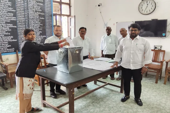లక్షెట్టిపేట,(విజయక్రాంతి): రాష్ట్ర బార్ కౌన్సిల్ ఎన్నికలు శుక్రవారం కోర్టు ఆవరణలో నిర్వహించారు. పోలింగ్ కేంద్రంలో న్యాయవాదులు ఓటు హక్కును వినియోగించుకున్నారు. ఎలక్షన్ నిర్వహణ పర్యవేక్షనాధికారిగా స్థానిక జూనియర్ సివిల్ జడ్జి సాయికిరణ్ కసమల వ్యవహరించగా ఎన్నికల అధికారిగా ఎస్.ప్రదీప్ కుమార్ వ్యవహరించారు. సహాయకులుగా స్థానిక ఇన్చార్జి సూపరింటెండెంట్ ఎన్.శ్రీనివాస్ జూనియర్ న్యాయవాది షారూక్ రూమాన్ వ్యవహరించారు.