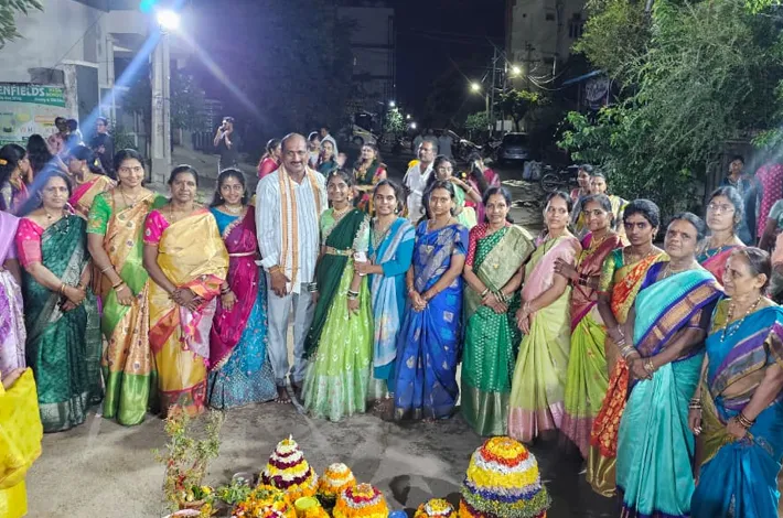 మేడిపల్లి (విజయక్రాంతి): పీర్జాదిగుడా మున్సిపల్ కార్పోరేషన్ పరిధి 25వ డివిజన్ లోని విహరిక కాలనీ, శ్రీ సాయి నగర్ కాలనీ, సాయి హిల్స్ కాలనీ,క్రాంతి కాలనీ, పలు డివిజన్ లలో సద్దుల బతుకమ్మ వేడుకల్లో పాల్గొన్న మాజీ మేయర్ జక్క వెంకట్ రెడ్డి, స్థానిక 25వ డివిజన్ మాజీ కార్పొరేటర్ దొంతిరి హరిశంకర్ రెడ్డి డివిజన్ లోని కాలనీలలో మహిళలు, యువతులు రంగురంగుల పూలతో బతుకమ్మలు పేర్చి తెలంగాణ సంప్రదాయ బద్ధంగా సద్దుల బతుకమ్మ పండుగను అంగరంగ వైభవంగా ఆటపాటలతో ఆనందంగా జరుపుకున్నారు. ఈ కార్యక్రమంలో 25వ డివిజన్ కాలనీల అధ్యక్షకార్యదర్శులు, పెద్దలు, మహిళలు, యువతీ యువకులు అధిక సంఖ్యలో పాల్గొన్నారు.