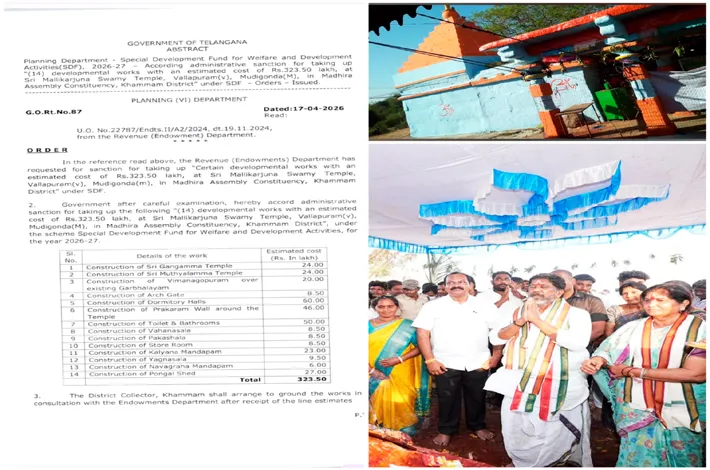 వల్లపురం శ్రీ మల్లికార్జున స్వామి అభివృద్ధికి రూ.3.23 కోట్ల నిధులు మంజూరు