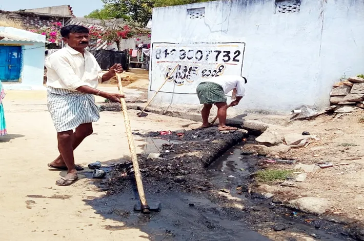 కార్మికులతో పాటు పారిశుధ్య పనులు చేసిన సర్పంచ్ భర్త