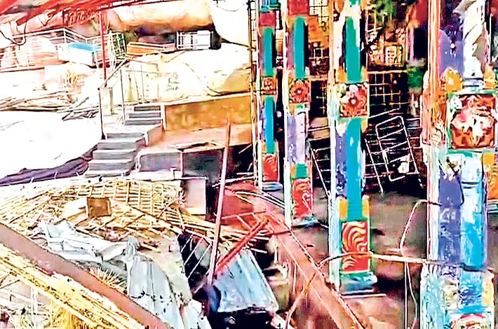 కొట్టుకుపోయిన ప్రసాదం కౌంటర్, ఆలయం ముందు రేకులు