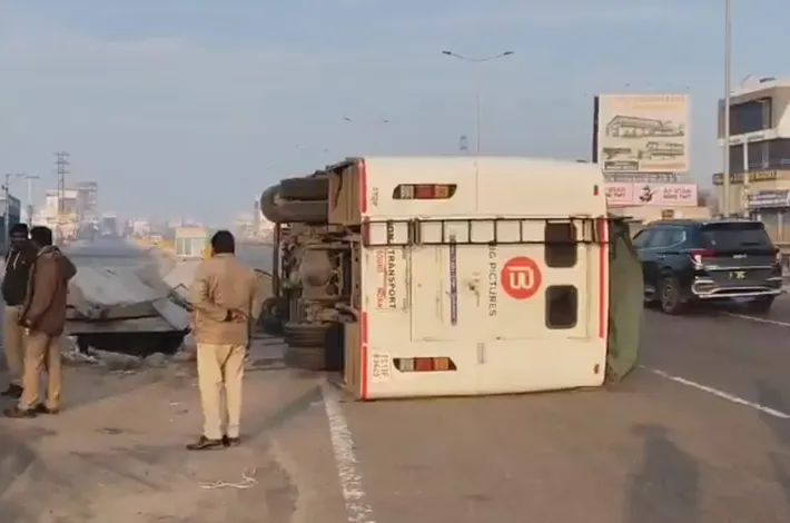 హైదరాబాద్: నగర శివార్లలోని హయత్నగర్లోని(Hayathnagar) పెద్దఅంబర్పేట వద్ద శుక్రవారం తెల్లవారుజామున సినిమా సిబ్బంది ప్రయాణిస్తున్న బస్సు రోడ్డు ప్రమాదానికి గురైంది. పోలీసుల ప్రకారం, బస్సు విశాఖపట్నం నుండి మణికొండకు వెళ్తుండగా, పెద్ద అంబర్పేట ఫ్లైఓవర్ ప్రవేశ ద్వారం వద్ద డ్రైవర్ నియంత్రణ కోల్పోయాడు. ఆ వాహనం రోడ్డు మధ్యలోని డివైడర్ను ఢీకొని బోల్తా పడింది. విజయ భాస్కర్ రెడ్డిగా గుర్తించబడిన డ్రైవర్తో పాటు, అతని తండ్రి నర్సి రెడ్డి, ఒక ఎలక్ట్రీషియన్, మరో సిబ్బంది సభ్యుడితో సహా మరో ఇద్దరు కూడా గాయపడ్డారు. గాయపడిన వారందరినీ సమీపంలోని ఒక ప్రైవేట్ ఆసుపత్రికి తరలించారు, అక్కడ వారి పరిస్థితి నిలకడగా ఉన్నట్లు సమాచారం. ప్రమాదానికి గల కచ్చితమైన కారణం ఇంకా తెలియరాలేదని, దర్యాప్తు జరుగుతోందని హయత్నగర్ పోలీసులు తెలిపారు.