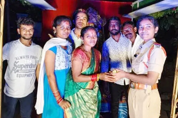 దుర్గామాత శోభాయాత్రలో పాల్గొన్న ఎస్ఐ సౌజన్య