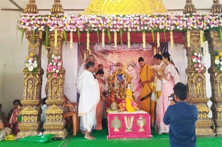 జగదేవపూర్,(విజయక్రాంతి): జగదేవపూర్ మండల పరిదిలోని ప్రసిద్ధ పుణ్య క్షేత్రం రాముని బండ ఆలయం లో శ్రీరామ నవమి పురస్కరించుకొని సీత రాములా కళ్యాణం గ్రామ సర్పంచ్ రజితఅశోక్ ఆధ్వర్యంలో కన్నుల పండుగగా జరిగింది. భక్తులు భారీగా తరలి వచ్చి స్వామి వారి కళ్యాణం తిలకించి పులకించిపోయారు. స్వామి వారికీకొబ్బరి కాయలు కొట్టి మొక్కులు చెల్లించుకున్నారు.కోరిన కోరికలు తీర్చే కోదండ రామయ్య నామం తో రాముని బండ క్షేత్రం మారుమోగింది. ఈ కార్యక్రమంలో ఉప సర్పంచ్ నర్సింలు, కాంగ్రెస్ పార్టీ సీనియర్ నాయకులు హనుమంత రెడ్డి, వార్డు సభ్యులు,ఆలయ దాతలు, అర్చకులు,గ్రామ ప్రజలు తదితరులు పాల్గొన్నారు.