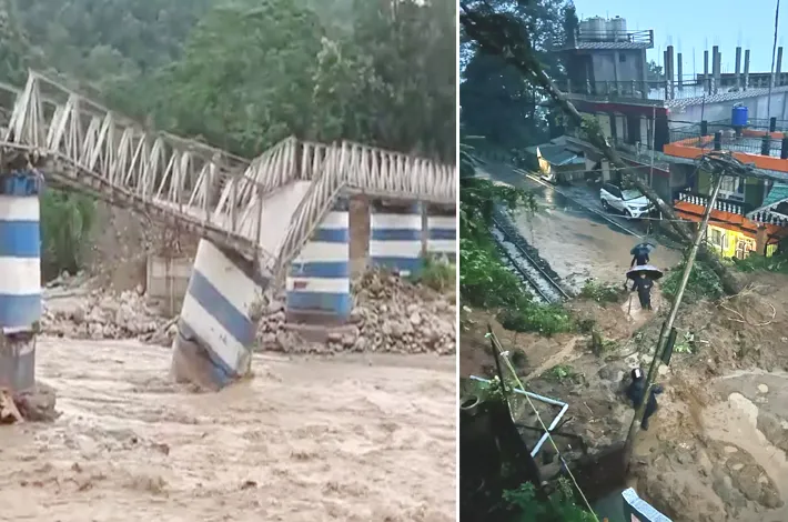కోల్కతా: భారీ వర్షాల కారణంగా పశ్చిమ బెంగాల్లోని డార్జిలింగ్ జిల్లాలో మిరిక్లో కొండచరియలు విరిగిపడి ఆరుగురు మరణించారు. ఈ ఘటన మిరిక్లోని జస్బీర్ బస్తీలో చోటు చేసుకుంది. మిరిక్, కుర్సియాంగ్ జిల్లాలోని పట్టణాలు, పర్యాటక ప్రదేశాలను కలిపే దుడియా ఐరన్ వంతెన కూలిపోయింది. కుర్సియాంగ్ సమీపంలోని జాతీయ రహదారి 110 వెంబడి ఉన్న హుస్సేన్ ఖోలా నుండి భారీ వర్షాల కారణంగా కొండచరియలు విరిగిపడిన విషయం తెలిసిందే. కొండచరియలు విరిగిపడి గ్రామాల నుండి జాతీయ రహదారుల వరకు రోడ్లు బురదలో మునిగిపోయిన దృశ్యాలు సోషల్ మీడియాలో వైరల్ అవుతున్నాయి.