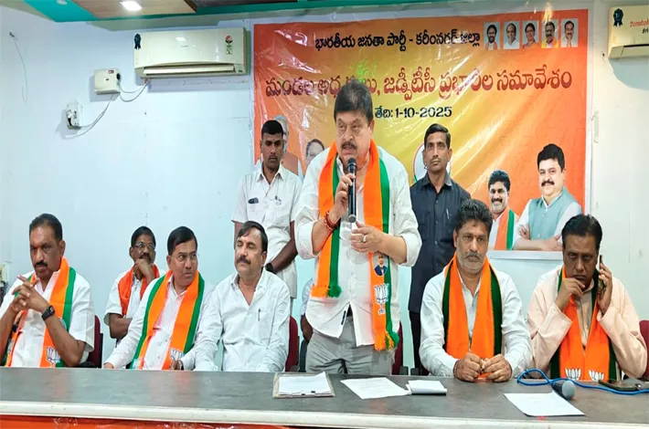 కరీంనగర్ బిజెపి జి ల్లా అధ్యక్షుడు గంగాడి కృష్ణారెడ్డి అధ్యక్షతన బుధవారం పార్లమెంటు కార్యాలయంలో జరగబోయేస్థానిక సంస్థల ఎన్నికల కోసం పార్టీ ముఖ్య నేతలు, మండల అధ్యక్షులు, ప్ర బారీలు, ఇన్చార్జిలతో సమావేశం నిర్వహించారు. ఇట్టి సమావేశానికి ముఖ్య అతిథిగా హాజరైన రామచందర్ రావు స్థానిక సంస్థల ఎన్నికల పై పార్టీ శ్రేణులకు దిశ నిర్దేశం చేశా రు. దేశాన్ని 60 ఏళ్లు ఏలిన కాంగ్రెస్ పార్టీ గ్రామాల అభివృద్ధి కోసం చేసిందేమిలేదని విమర్శించారు.