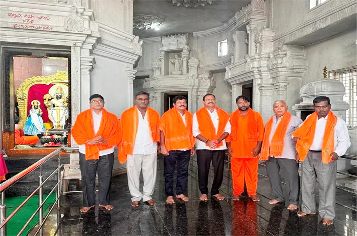 జాజిరెడ్డిగూడెం(అర్వపల్లి),డిసెంబర్17: తెలంగాణ రాష్ట్రంలో మొట్టమొదటిసారిగా సూర్యాపేట జిల్లా జాజిరెడ్డిగూడెం మండలం తిమ్మాపురం గ్రామ శివారులో నిర్మించిన అఖండ జ్యోతి స్వరూప సూర్యనారాయణ స్వామి మహా క్షేత్రాన్ని బుధవారం హైదరాబాదులోని నాచారానికి చెందిన శ్రీ మహంకాళి సహిత మహంకాళేశ్వర స్వామి దేవస్థానం చైర్మన్ మెతుకు శ్రీనివాస్ రెడ్డి,ఆలయ ధర్మకర్తలు స్వామివారిని దర్శించుకుని ఆలయంలో ప్రత్యేక పూజలు జరిపారు.