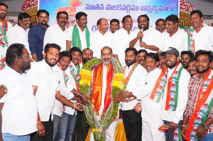 వేములవాడ టౌన్,(విజయక్రాంతి): పట్టణంలో ఇటీవల నూతనంగా ఎన్నిక కాబడిన శ్రీ రాజరాజేశ్వర ట్రాక్టర్స్ ఓనర్స్ అసోసియేషన్ వారు రాష్ట్ర ప్రభుత్వ విప్ ఆది శ్రీనివాస్ ను మహాలింగేశ్వర గార్డెన్స్ లో ఘనంగా సన్మానించారు. అనంతరం వేములవాడ పట్టణ చెందిన బిజెపి నాయకులు వేములవాడ ట్రాక్టర్ అసోసియేషన్ అధ్యక్షులు సరిపెల్లి కార్తీక్ లిక్కిడి జితేందర్ ఆధ్వర్యంలో వారి మిత్రబృందం 50 మంది ప్రభుత్వ విప్ వేములవాడ శాసనసభ్యులు శ్రీనివాస్ సమక్షంలో కాంగ్రెస్ పార్టీలో చేరాగ వారికి విప్ కాంగ్రెస్ పార్టీ కండువా కప్పి పార్టీలోకి ఆహ్వానించారు.
